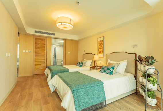 服务特色:可接收异地老人,具备医保定点资格,按长者身体状况提供分级服务。健康自理型服务涵盖优美居住环境、营养餐饮、管家服务、健康管理及多彩文娱活动;不能自理型提供独立专属区域,按需提供个人及房间清洁、用餐协助、生活照护,搭配日常巡诊、药品管理、生命体征监测等医护服务与康复娱乐活动;医养康复型主打1-3个月短期医康养服务,除生活照护外,按需执行心肺康复、神经康复、运动康复等康复处方;失智型设独立专属区域,提供专业失能照护、生活辅助、医疗护理、活动辅疗及认知训练。膳食方面,按营养需求搭配食材,保障每日摄入荤素食材20种以上。