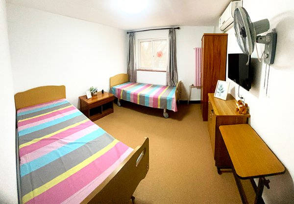 北京市松鹤养老院有限公司占地面积5000平米,建筑面积1600平米,配备千米休闲广场及多样化健身器材,供长者日常散步、锻炼;居室按标准配置,单间使用面积不小于10平方米,双人间不小于14平方米,多人间不小于18平方米,每个房间配备独立卫生间、呼叫器、衣柜、床品等设施,满足日常居住需求。院内消防设施齐全,水电供应稳定,冬季室内温度不低于16度,夏季不超过28度,洗衣房定期消毒公共洗衣机,饭厅配备消毒柜、防蝇设备,从居住到饮食,全方位保障长者安全。
