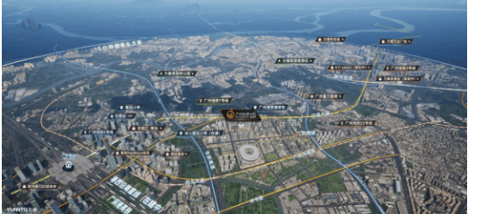 广州足球公园坐落于广州市番禺区聚龙新街北,地处广州城市发展重点规划的南部核心板块,占据长隆 - 万博商圈与广州南站商圈两大世界级地标商圈之间的黄金位置,是广州 “5+2+4+22” 商圈规划中番禺重点发展区域。广州南站作为世界级综合交通枢纽,汇集海量人流、物流、资金流,长隆 - 万博商圈则是广州南部成熟的商业、商务、居住中心,两大商圈联动发展,形成强大的产业、商业、人口虹吸效应,为项目带来持续的发展动力与配套支撑。