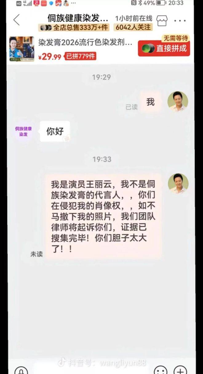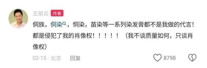 博鱼体育,博鱼体育官方网站,博鱼体育APP下载最近,演员王丽云在社交媒体上发布了一段视频,透露有些电商平台上销售的染发产品涉嫌侵犯她的肖像权。她在视频中表示,自己已经收集好了相关证据,准备通过律师起诉这些品牌。视频显示,某款名为侗族染发的染发膏在其电商展示图上使用了王丽云的照片。王丽云在评论区明确指出:‘侗族染发’、‘侗染’、‘恫染’、‘苗染’等多个染发膏产品都不是我代言的,它们侵犯了我的肖像权!她还特别强调,如果相关品牌方不立即撤下这些照片,自己的律师团队将采取法律行动。